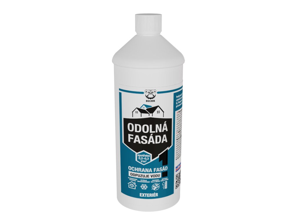 Nanáší se zpravidla po očištění fasády od porostů řas a mechů přípravkem Buldok Čistič fasády a umytí tlakovou vodou (max. 5 MPa). U zateplené fasády tlakovou vodu nepoužívejte, očistěte mechanicky kartáčem a opláchněte mírným proudem vody – malířský nebo zahradní postřikovač. Aplikační teplota nad +5°C. Odolnou fasádu nenanášejte za deště či očekávání deště, za přímého slunce nebo na omrzlé povrchy. Odolná fasáda obvykle nemění vzhled ošetřeného materiálu (doporučujeme odzkoušet na malé zkušební ploše). Nanáší se jen v takovém množství, které úplně vsákne do podkladu. Při nanesení nadměrného množství mohou vzniknout výkvěty. Odolná fasáda se nanáší štětcem, válečkem nebo nízkotlakým stříkáním. Nářadí musí být odolné vůči alkáliím (plasty, ocel). Provádí se 1 nános do stadia nasycení podkladu. Na svislých plochách pracujte shora dolů (nesmí stékat po stěnách - nebezpečí výkvětů), na vodorovných plochách rozetřete nevsáklou Odolnou fasádu do suchých míst. Chraňte přilehlé plochy před potřísněním. Ze zasažených povrchů odstraňte Odolnou fasádu čistou vodou, dokud je ještě vlhká.