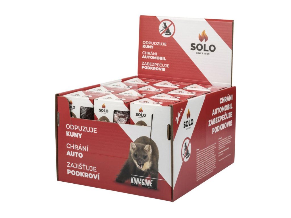 Odpuzovač kun SOLO KUNGAGONE chrání auto a zajišťuje podkroví. Kunagone je osvědčený způsob ochrany před kunami a jinými zvířaty. Stačí, že umístíte obsah balení pod kapotu vašeho vozu, na půdě nebo v podkroví a aroma sáčku Kunagone vytvoří ochrannou bariéru.Doplňkové parametry