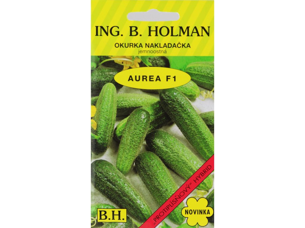 AUREA F1 - Rostlina je relativně silně vzrůstná. List je menší, světleji zelený, hodně špičatý. Je geneticky nehořká, převážně samičího typu, výskyt „jalových“ květů je velmi malý. Plod je štíhlý, poměr délky a k šířce 3 : 1, tupě zakončený, hladký, osten bílý jemný. AUREA je poměrně raná odrůda. Odolnost k chorobám: AUREA je úplně odolná k viru CMV a vysoce odolná k ZYMV. Je také značně odolná (v polních podmínkách) k plísni okurkové – mezi jemnoostnými odrůdami patří mezi nejlepší. Ostatní obvyklé choroby okurek jako čerň okurková, bakterioza a padlí se u ní během zkoušení nevyskytly.