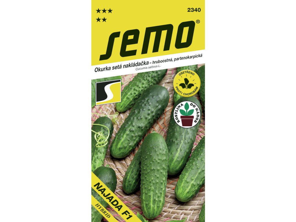 NAJADA F1 - kolekce DO NÁDOB - raná, středně vzrůstná hruboostná partenokarpická nakládačka, která kvete čistě samičími květy. Plody jsou štíhlé, velmi dlouhé (10–14 cm) a tupě zakončené.