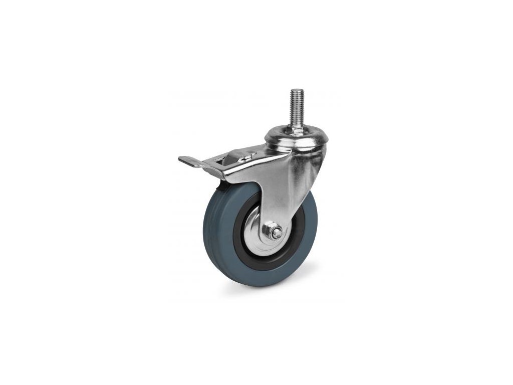 Otočné pojezdové kolo s brzdou d50/35kg, šedý kaučuk, kluzné ložisko, čep M12