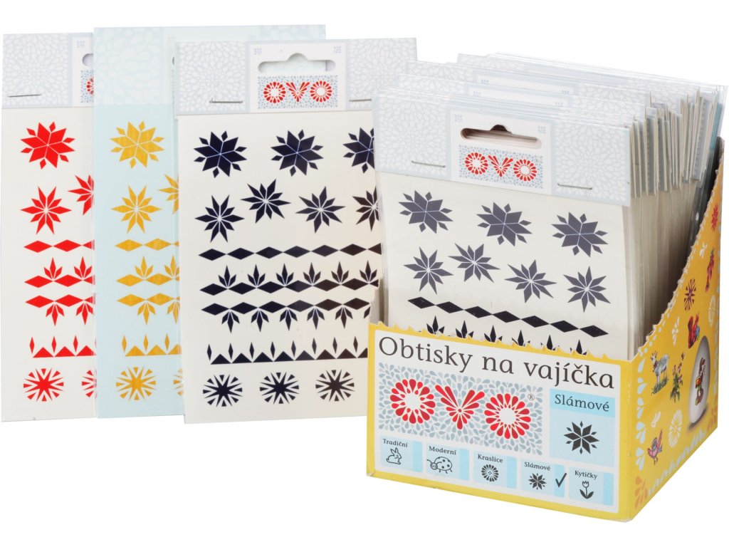 Popis:Slámové obtisky na velikonoční vajíčka. Na 1 aršíku vždy 12 motivů. Snadná aplikace pomocí vody. Oživte své velikonoční vajíčka imitací dekorů, které navozují vzhled tradičních kraslic.