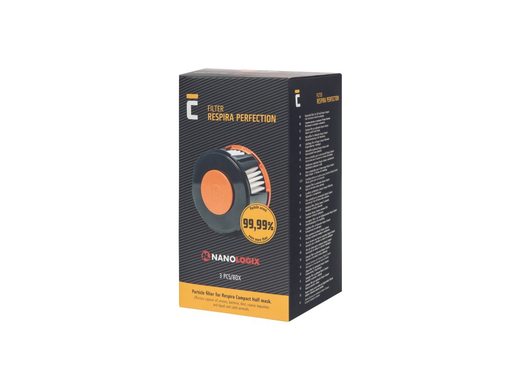 možnost sterilizace filtru až 5x, a to buď ponořením v 60% roztoku alkoholu nebo teplotou 80°C po dobu 20ti minut nebo ozónem nebo UV; nejmenší vir 200 nanometrů, nanofiltry zachytí částici o velikosti 50 nanometrů; mnohem delší životnost, díky použitému nanofiltračnímu materiálu a jednomu nádechovému a výdechovému ventilu je životnost filtru přibližně 4x delší, než u běžných filtračních materiálů polomasek a celoobličejových masek; balení obsahuje 3 filtryDoplňkové parametry