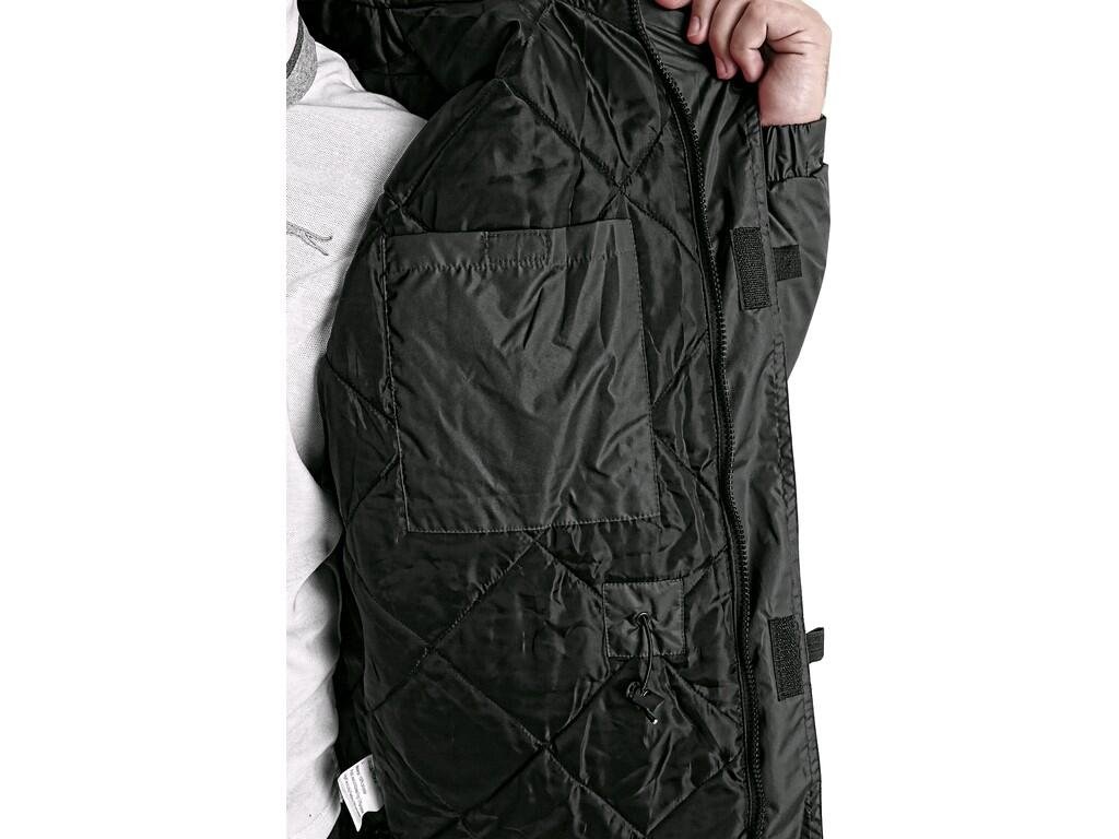 Pánská zateplená bunda, odolná proti vodě a větru, kapuce v límci, zapínaní na zip krytý légou, rukávy zakončené regulovatelnou manžetou, 2 náprsní kapsy kryté patkou, 4 spodní kapsy z toho dvě kapsy kryté patkou, dvě kapsy z boku, reflexní doplňky, stahování v pase, vnitřní náprsní kapsa, lepené švy.Doplňkové parametry