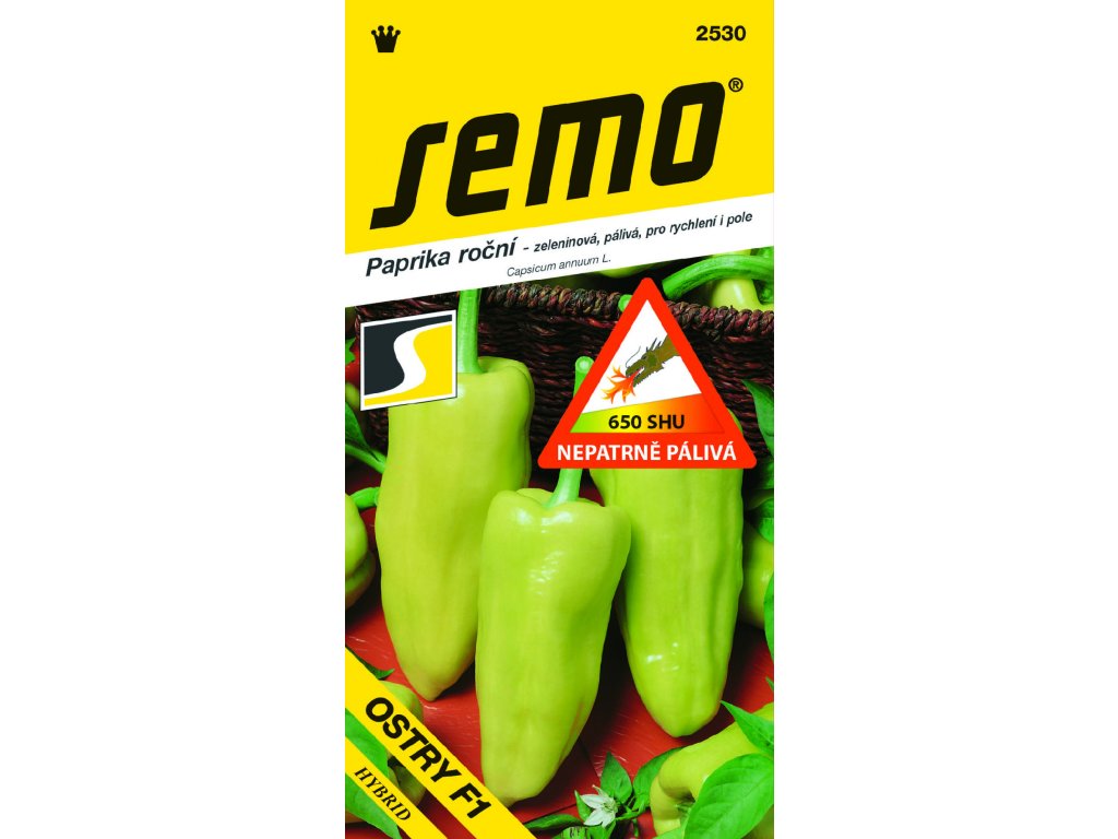 OSTRY F1 (kód 2530) – poloraný nový hybrid vhodný pro rychlení i polní pěstování. Postavení větví polovzpřímené, stonek po první větvení středně dlouhý. Plod středně dlouhý až dlouhý, středně široký až široký, na podélném řezu trojúhelníkovitého tvaru, stopečná jamka středně hluboká, apikální konec špičatý, povrch slabě zvrásněný, mezikomorové brázdy středně hluboké, lesk silný, barva před zralostí středně nazelenale bílá, ve zralosti středně až tmavě červená, oplodí středně silné, placenta malá až středně velká, obsahuje kapsaicin. Chuť mírně pálivá (pálivý