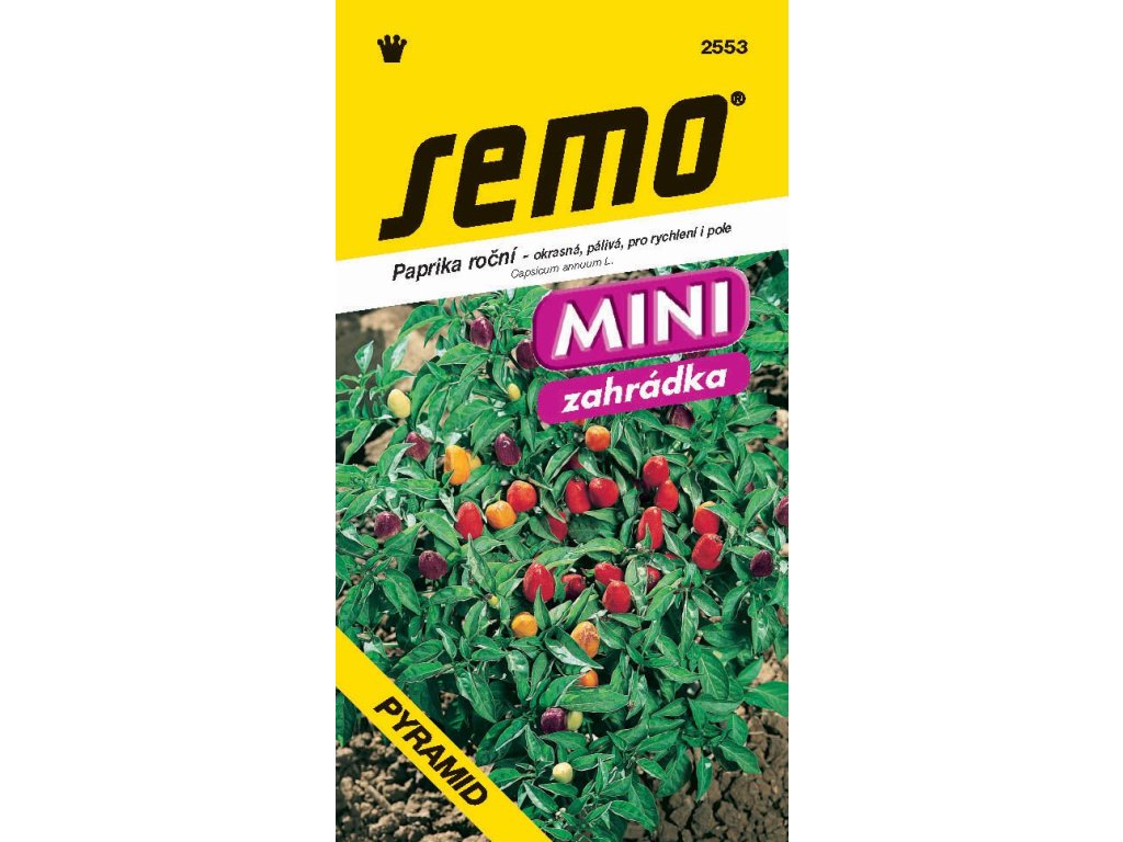 PYRAMID (kód 2553) – kolekce MINI ZAHRÁDKA – okrasná odrůda. Keříčková, kompaktní rostlina je velmi nízkého vzrůstu. Používáme jako dekorační rostlinu pro nádoby i záhony. Pálivé plody velikosti 2 cm lze konzumovat, v technické zralosti jsou světle žluté až žluto-zelené s fialovými stíny, v botanické se vybarvují do oranžova a červena.