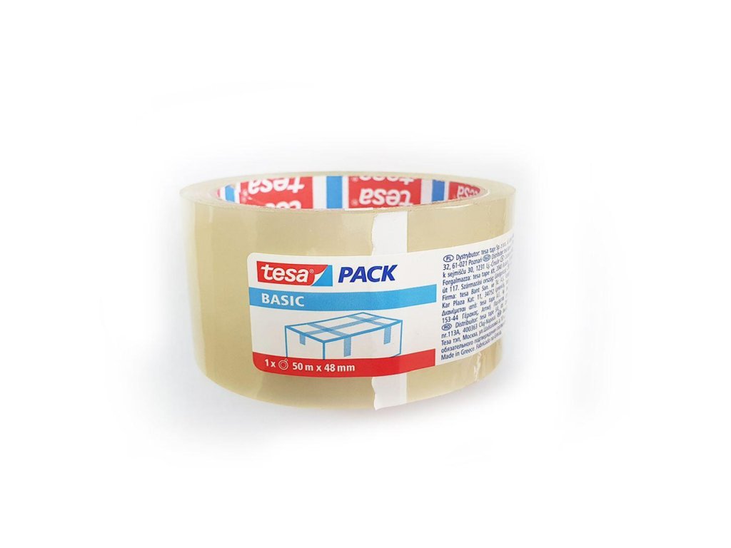 rozměry: 48 mm x 50 m barva: transparentní Balicí páska na tesapack® BASIC je základní univerzální páska pro celou řadu použití. Je ideální k balení a uzavírání lehčích zásilek a kartonových balíků a krabic.Doplňkové parametry