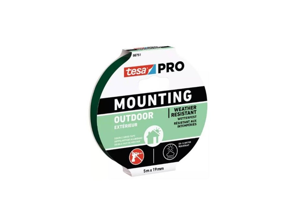 - Páska tesa PRO Mounting Outdoor urychluje a usnadňuje řemeslníkům práci ve venkovním prostředí. Díky spolehlivé a účinné lepicí síle výborně drží na náročném povrchu (dlaždice, cihly, kov, tvrdé plasty). Zákazníkům tak můžete nabídnout trvalé a bezpečné upevnění důležitých objektů (dopisní schránky, čísla na domech) pomocí pásky odolné proti UV záření, vlhkosti i teplotním extrémům.