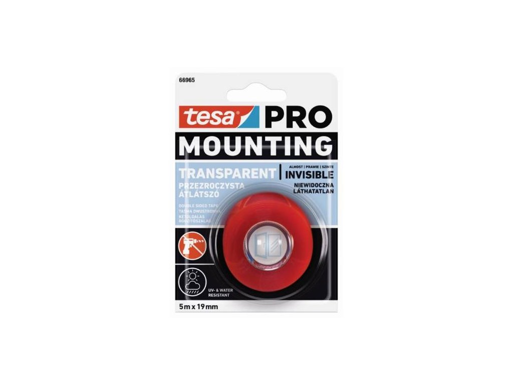 - tesa PRO Mounting Transparent je trvanlivá, průsvitná a tenoučká lepicí montážní páska, oboustranná – výborně se hodí pro využití uvnitř i venku