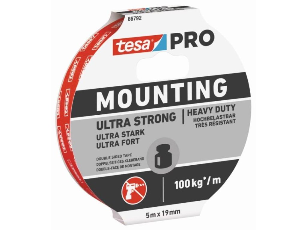 - model tesa PRO Mounting Ultra Strong udrží objekty až 10 kg na jeden kus pásky, a dokonce vyrovná i lehkou nerovnost povrchu