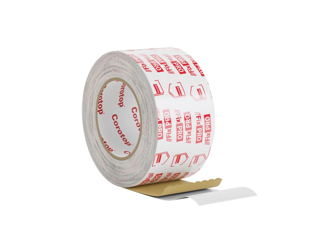 Univerzální opravná parotěsná jednostranná lepicí páska složená z polyethylenové fólie, vyztužené polyesterovým vláknem a vylepšeného akrylátového lepidla. Pro lepení a opravy střešních membrán a dalších stavebních výrobků na bázi polypropylenu. Vyznačuje se zvýšenou pevností lepidla a vyšší odolností v náročných podmínkách. Doporučuje se zejména pro lepení v kritických oblastech. Corotop Fix PRO je jednostranná páska vyrobená z polyetylenové fólie a akrylového disperzního lepidla, vyztužená polyesterovým vláknem. Pro lepení a opravy střešních fólií a dalších stavebních výrobků na bázi polypropylenu. Vyznačuje se zvýšenou přilnavostí a vyšší odolností proti ztíženým podmínkám. Zvláště se doporučuje pro lepení na kritických místech. Odolné vůči UV záření a procesům stárnutí.Vlastnosti:
