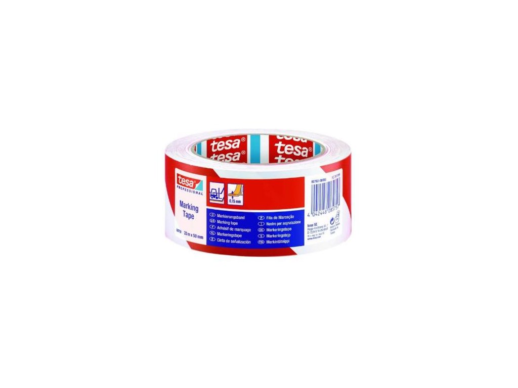 Páska výstražná samolepící PVC, 60760, 33 m x 50 mm, samolepící, červeno-bílá