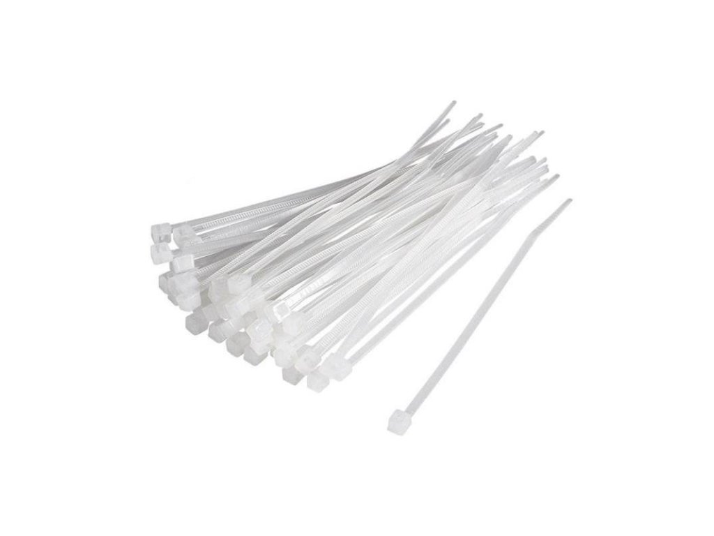 Pásky vázací, 200 x 3,6 mm, 100 ks, bílá