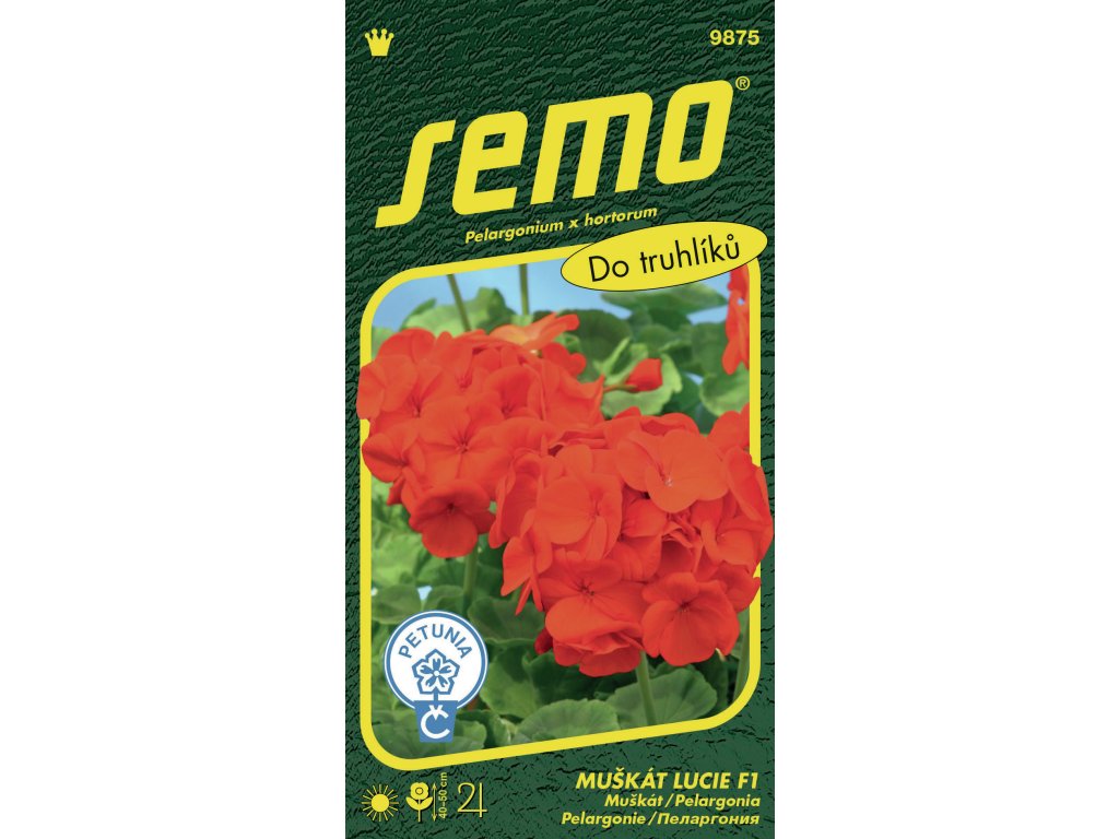 LUCIE F1 (kód 9875) – oranžová barva květů s přechodem až do karmínově růžové. Listy jsou zelené s výraznou kresbou. Rostliny mají silné a pevné stonky. Výška rostliny je 25 cm bez květenství (celkem 40–50 cm).