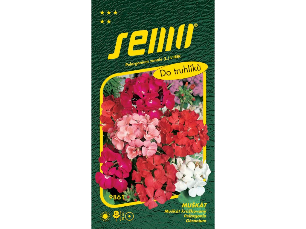 Oblíbená trvalka pěstovaná jako letnička, směs barev, výška 40cm. Rostliny s okrouhlým listem s charakteristickým proužkem. Uplatní se jako balkónová rostlina pro pěstování v nádobách, okenních truhlících i k výsadbě na záhony. Vyžaduje slunné stanoviště a provzdušněnou neutrální až zásaditou půdu. Předpěstování je časově náročné, trvá přibližně 4 měsíce. Vyséváme do propařené, strukturní zeminy a jemně zasypeme. Zajistíme doporučenou teplotu a po vyklíčení dostatek světla. Přepichujeme 3-4 týdny po výsevu. Následně rozsadíme jednotlivé rostliny do květináčů. V průběhu vegetace přihnojujeme a odstraňujeme uvadlé květy. K bohatému kvetení potřebují slunce a teplo. Přezimuje na světlém místě při teplotě min. 5-10°C