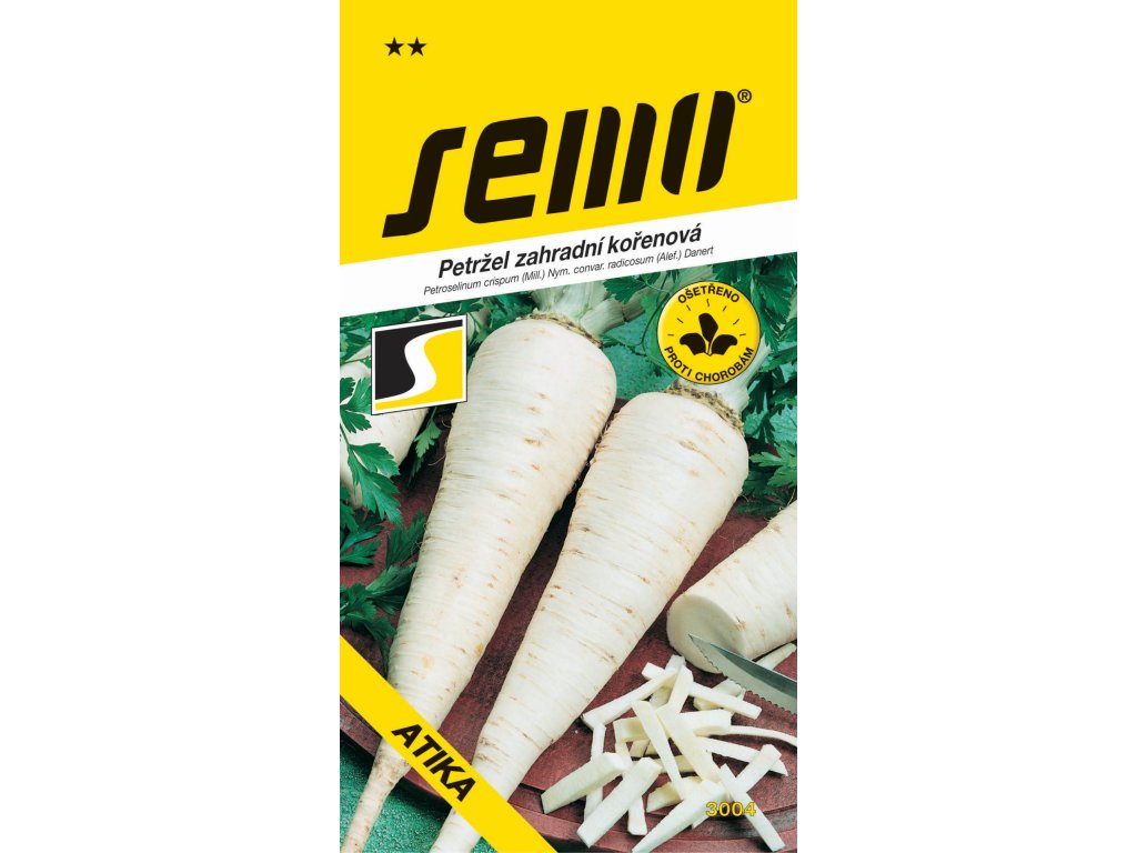 ATIKA – kolekce MAXI – raná odrůda kořenové petržele se středně vysokou, tmavě zelenou natí, která se vyznačuje vyšší odolností vůči padlí. Kořeny jsou robustní, dlouhé, trojúhelníkového tvaru, Vzhledem k rychlosti růstu kořenů lze sklízet pro přímý konzum dříve než ostatní odrůdy a je tedy doporučovaná i pro sklizně na svazečkování.