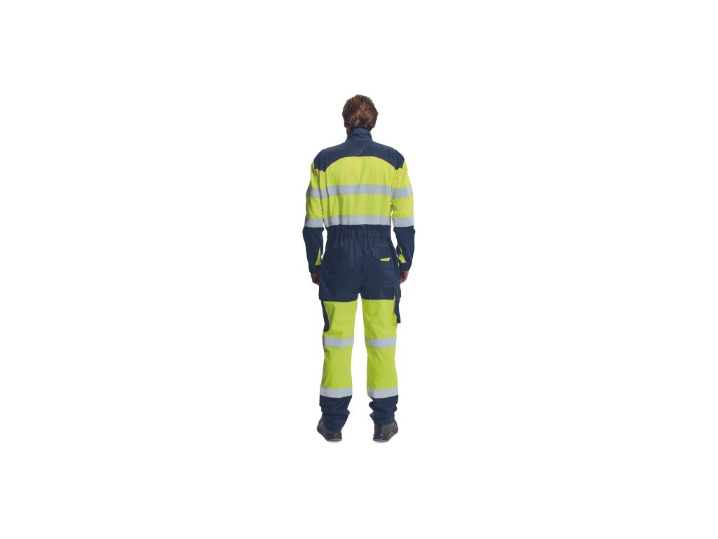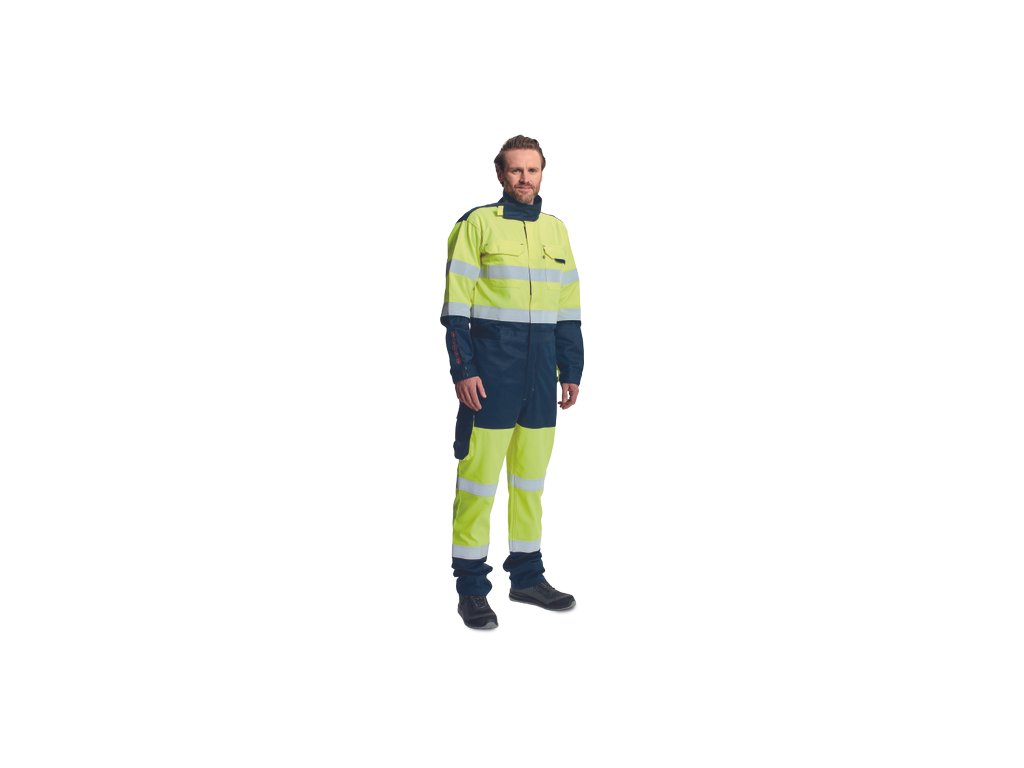• pánská HI-VIS multinormní kombinéza s elastickým pasem • zapínání na zip kryté légou na suchý zip • 2 boční kapsy • 2 stehenní kapsy s klopou na suchý zip • 2 náprsní kapsy na suchý zip • 2 zadní kapsy na suchý zip • dvojice 5 cm šitých reflexních pruhů okolo rukávů, boků a lýtek • elastické manžety rukávů se suchým zipem • nastavitelná délka nohavicDoplňkové parametry