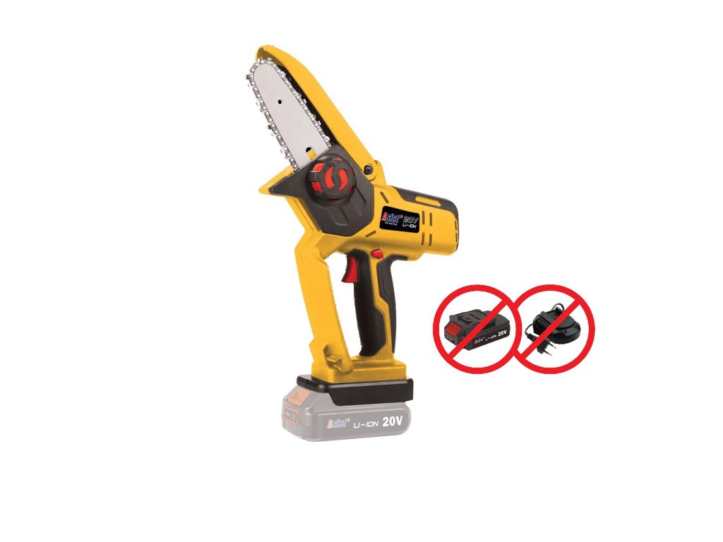 Pila řetězová Aku 20 V, ASIST. AKU GANG! Rodina strojů vytvořena pro kutily, kteří chtějí být nezávislý na dosahu přímého připojení do sítě a zároveň nechtějí vydávat vysoké částky za profi stroje. Díky těmto požadavkům zákazníků přinášíme velice zdařilou a kvalitní sérii strojů u kterých můžete vzájemně kombinovat bateriie i nabíječky. Stačí vám tedy pouze jeden stroj včetně vybavení a u ostatních strojů již šetříte a dokupujete je bez baterie a nabíječky. Nejhorší pro akumulátory (baterie) je, pokud s nimi nepracujete a necháte je ladem ležet, navíc třeba nenabité. Z tohoto důvodu vám přinášíme výrobky, které můžete používat postupně kdykoliv v průběhu roku a nemusíte se tak bát. A pokud máte vše hotovo a už se vám nechce dělat, tak vám aspoň může kdykoliv posvítit naše svítilna za pár kaček. Jako startovací sadu a nejpoužívanější stroj můžete využít akuvrtačky AE2V20A-151 pro příležitostné práce a nebo AE20V20A-201-BMC pro běžné domácí práce a kutily. Parametry: - napájení: 20 V - délka lišty: 100 mm - rychlost řetěz: 4 m/s - otáčky: 3200/min - soft grip: anoDoplňkové parametry