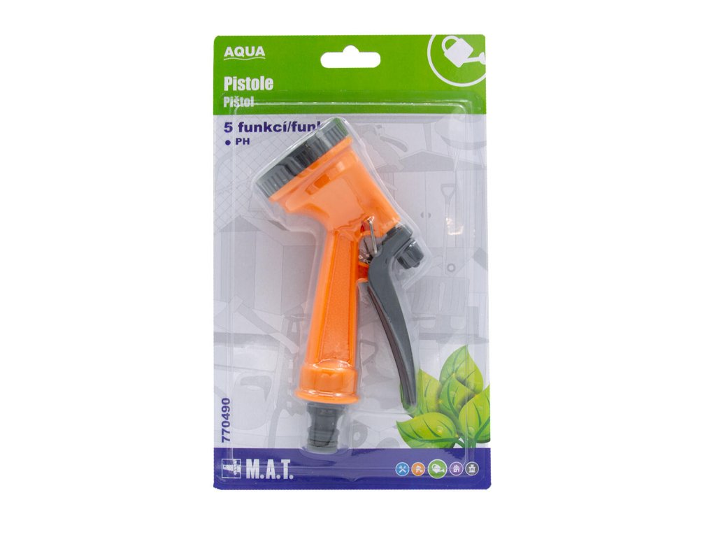 materiál: plast Proudová pistole AQUA je s 5 funkcemi ideálním doplňkem zahradní hadice.Doplňkové parametry