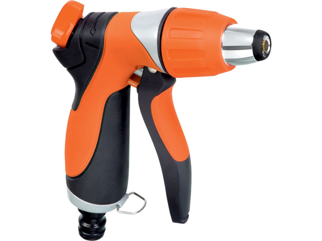 Popis:Postřikovací pistole kovová s protiskluzovým ergonomickým držadlem, pryžovou hlavou, plynulou regulací rozstřiku, jednoduše ovladatelnou vpředu umístěnou aretací, s regulací přítoku vody se skvělým designem a funkční zdatností.