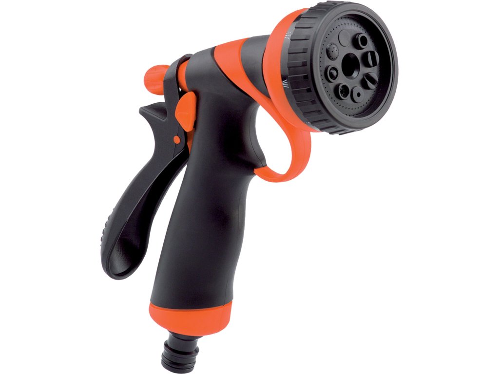 Popis:Víceúčelová postřikovací pistole s ergonomickým držadlem, se sedmi druhy nastavení rozstřiku (sprcha, perlátor, mlžítko, proud atd.). S regulací přítoku vody se skvělým designem a funkční zdatností. Baleno v blistru.