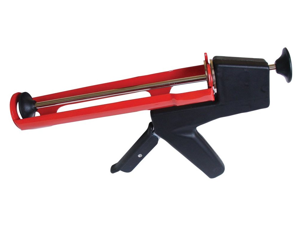 Vytlačovací pistole s plastovou rukojetí a kovovým rámem. Pistole je kroková (převodová), snažší manipulace při práci.Doplňkové parametry