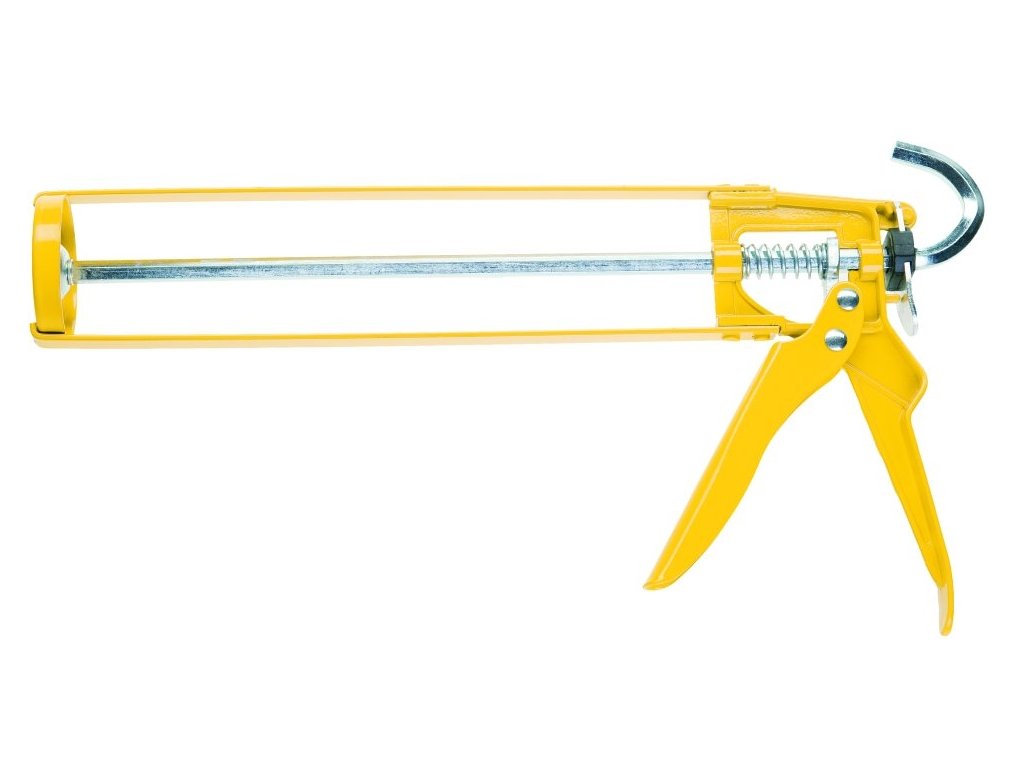 Kvalitní kovová vytlačovací pistole se zpětným chodem vytékání materiálu z kartuše po ukončení práce. Hákovité zakončení pro pohodlné a rychlé nastavení pístu do požadované polohy. Tyč aplikačního pístu má šestihranný profil pro zvýšené tření. Používá se na práci s tmelem, silikonem, akrylem apod.Doplňkové parametry