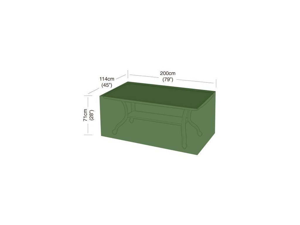 rozměry: 200 x 114 x 71 cm materiál: PE (polyethylen) 90 g/m2 barva: zelená Krycí plachta na obdelníkový 8 místný stůl slouží pro dlouhodobé zakrytí a chrání před deštěm, prachem a větrem.Doplňkové parametry