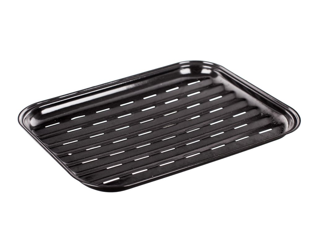 Plech grilovací 35 x 24 cm, ČER. rozměry: 35 x 24 cm barva: černá Smaltovaný pečící plech je ideální pro tučné a šťavnaté pokrmy. Zachycuje šťávu, omezuje nechtěné vzplanutí odkapávajícího tuku a šťávy.Doplňkové parametry
