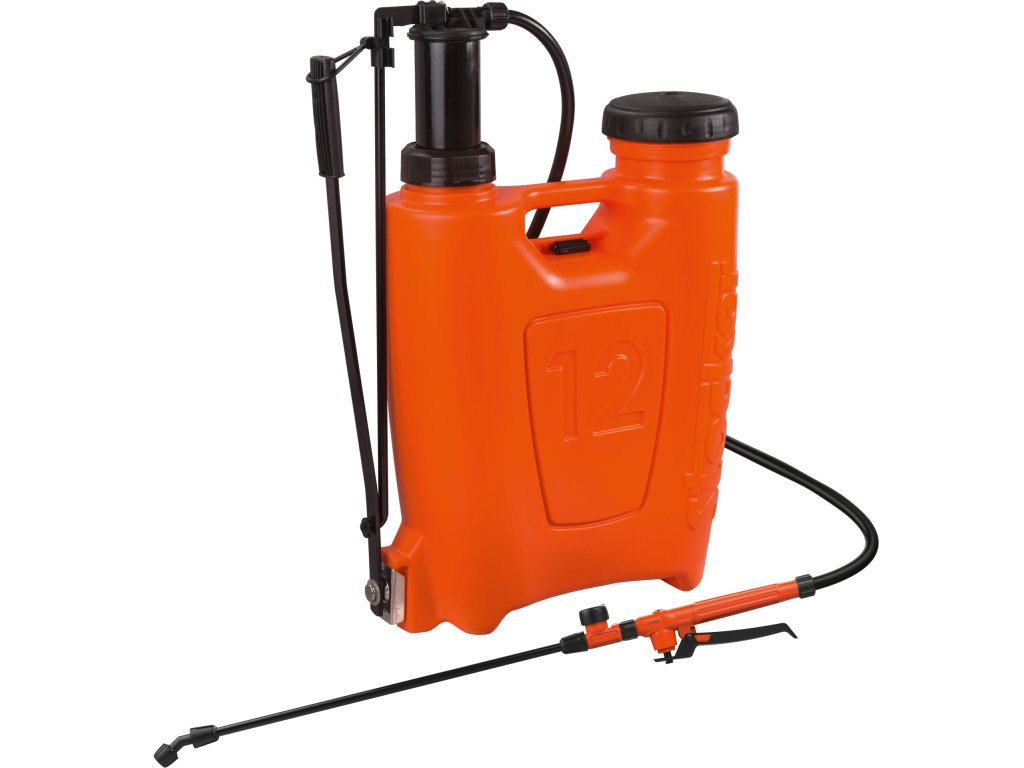 Zádový tlakový postřikovač Stocker o objemu 12 litrů je určený k postřikům, hnojení nebo rosení. Ergonomicky tvarovaná konstrukce nádoby ze sklolaminátu zajišťuje pohodlnost práce. Tlak až 5,5 BAR. Zahradní postřikovač je vybaven pohodlným popruhem o šířce 3 cm. Obsahuje 2 postřikovací nástavce (jeden plastový a jeden hliníkový) – délka: 86 cm.