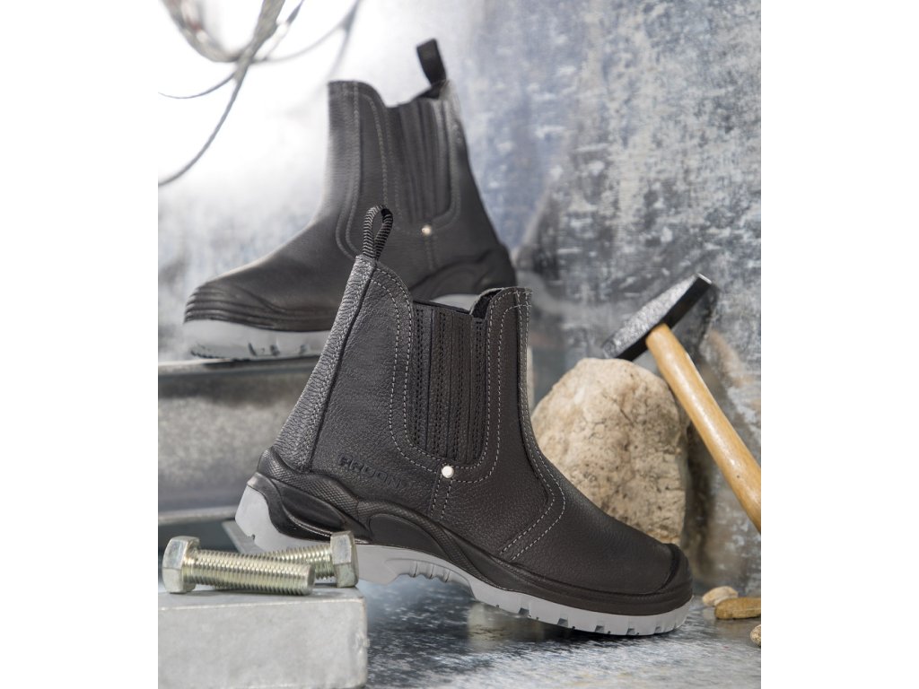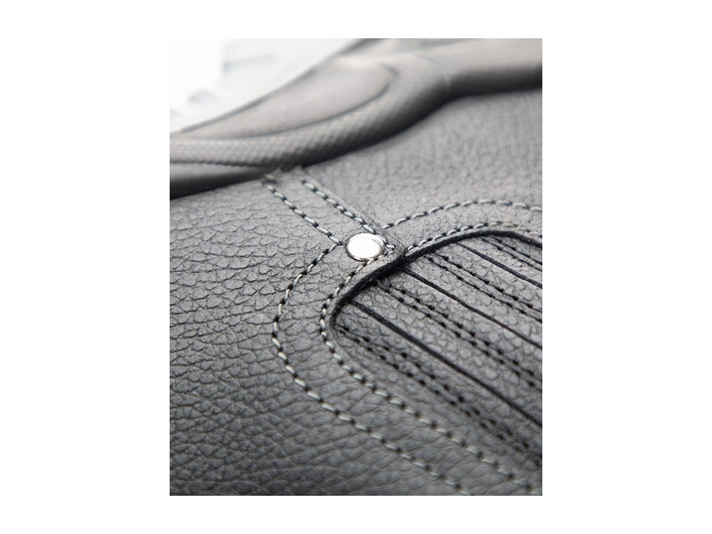 - v oblasti kotníku bezpečnostní boční vsadky z kombinace gumy a kůže pro okamžité vyzutí v případě vniknutí okuje do obuvi