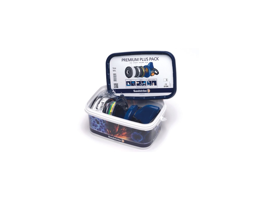 sada polomasky SR 100, částicového filtru SR 510 P3 R, plynového filtru SR 297 ABEK1, předfiltru, držáku předfiltru a čistícího ubrouskuDoplňkové parametry