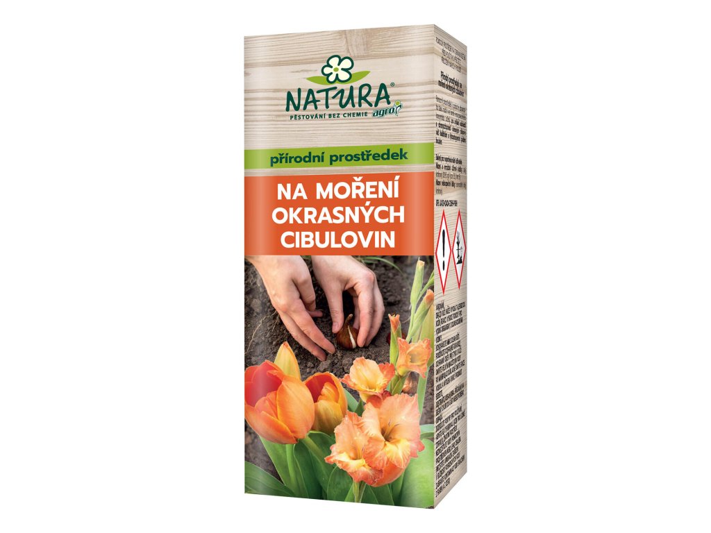 Přípravek NATURA na moření okrasných cibulek 100 ml. objem: 100 ml NATURA Přírodní prostředek na moření okrasných cibulovin s UNIKÁTNÍ RECEPTUROU na bázi přírodních látek. Slouží k posílení obranyschopnosti okrasných cibulovin proti háďátkům a půdním houbovým chorobám. Používejte přípravky na ochranu rostlin bezpečně. Před použitím si vždy přečtěte označení a informace o přípravku.Doplňkové parametry