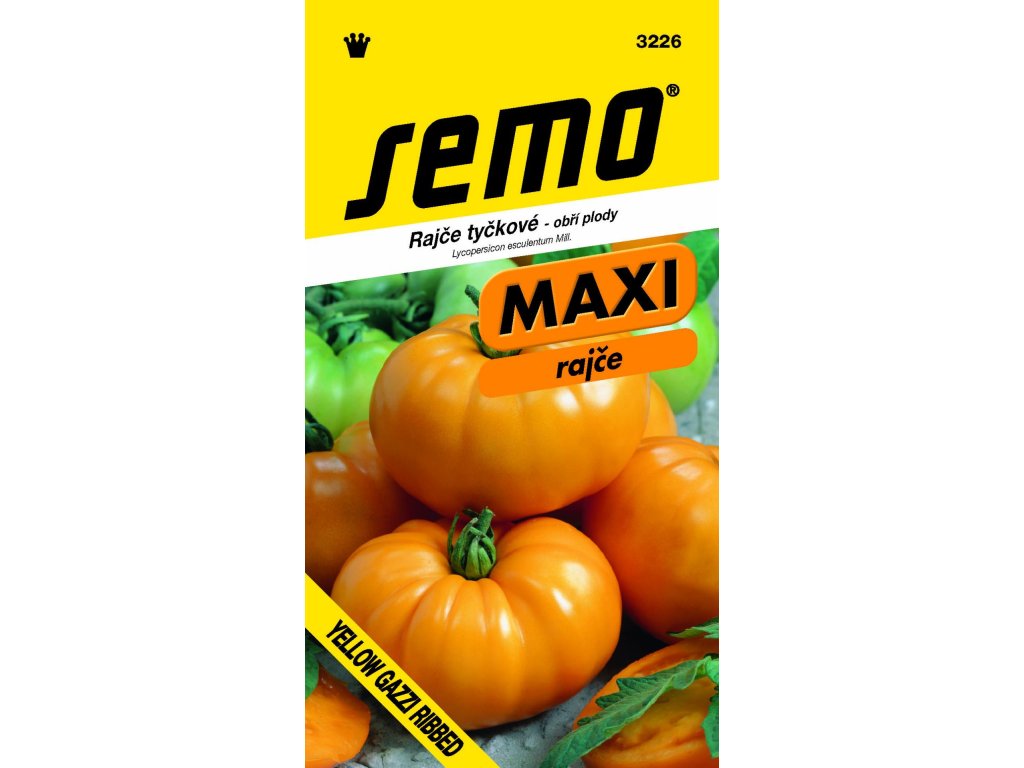 YELLOW GAZZI RIBBED – kolekce MAXI - velkoplodé žluté rajče s výbornou chutí. Vícekomorové plody biftekového typu dorůstají hmotnosti 400 – 500 gramů. Tyčkové rajče vhodné pro polní pěstování i fóliové kryty.