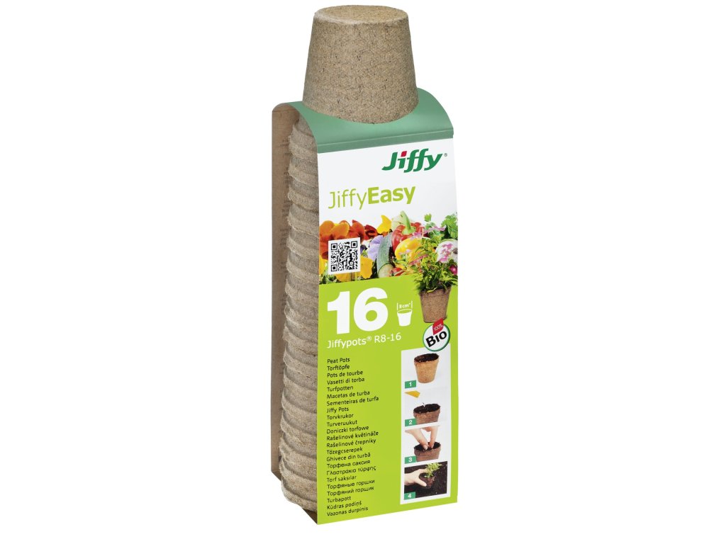 Rašelinový květináč Jiffypot® R8-16, 8 cm - balení 16 kusů