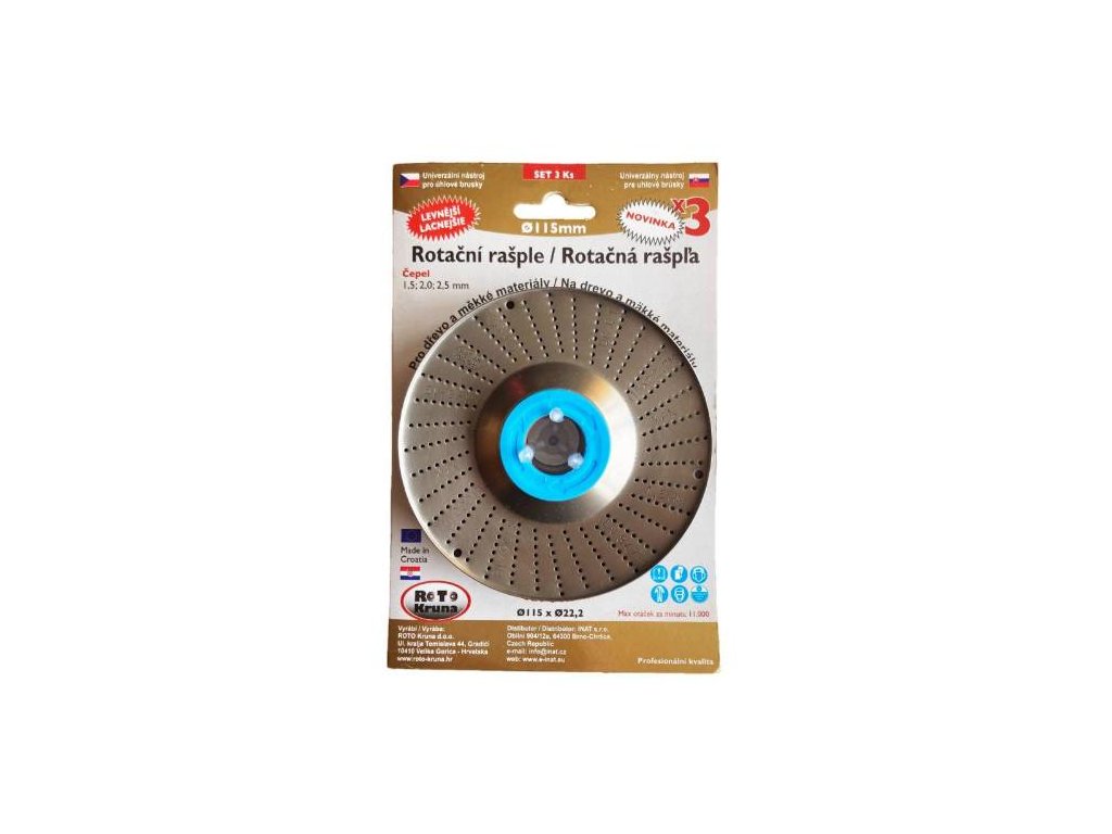 Rašple rotační sada Ø 115 mm (čepel 1.5, 2.0, 2.5 mm)