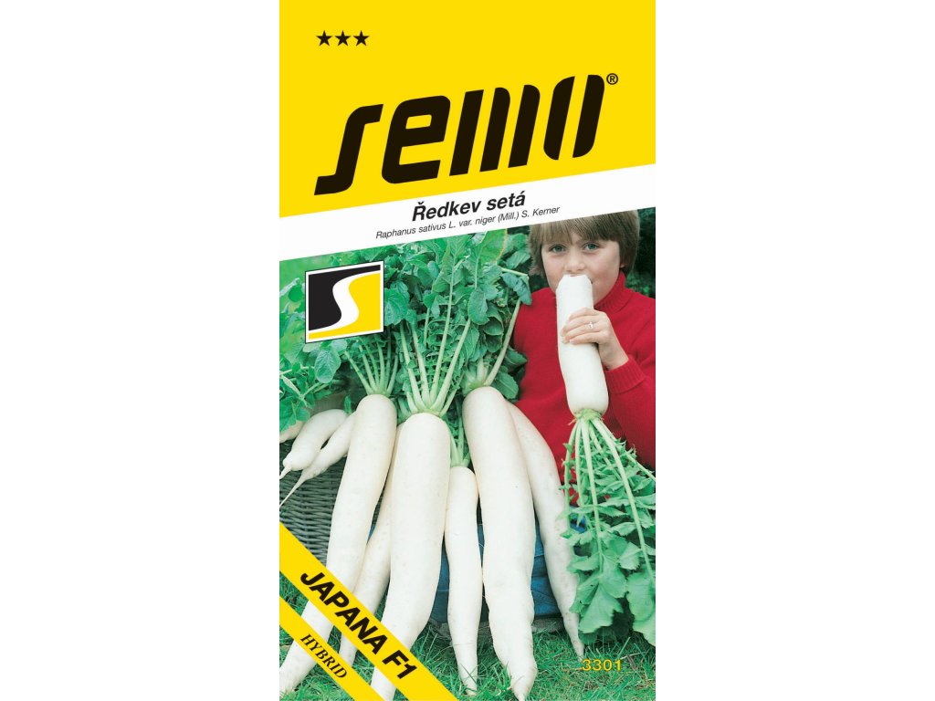 JAPANA - první česká odrůda typu DAIKON. Kořeny jsou válcovité, až 40 cm dlouhé, bílé. Dužnina je jemná, šťavnatá a kompaktní. Netrpí sklonem k houbovatění. Má intenzivní růst a krátkou vegetační dobu. Vzhledem k dlouhým kořenům vyžaduje lehčí, hluboce a dokonale zpracovanou půdu, velmi kvalitní kořeny poskytuje při pěstování na hrůbcích. V červenci – srpnu vyséváme špetky do hnízd 50 x 30 cm, po vzejití vyjednotíme na jednu rostlinu. Dobře se skladuje po celou zimu.