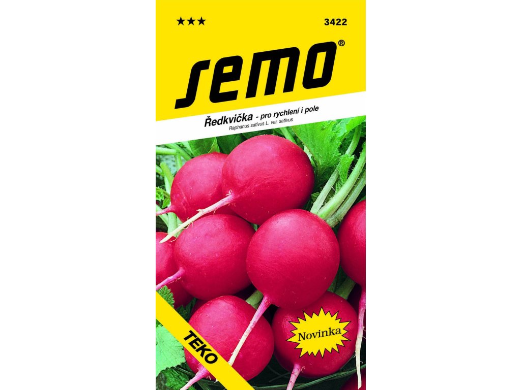 TEKO - velmi raná odrůda pro jarní a podzimní pěstování i rychlení ve folnících. Bulvička jasně červené barvy má jemný, nitkovitý kořen a bílou dužninu. Vyniká odolností k vybíhání.