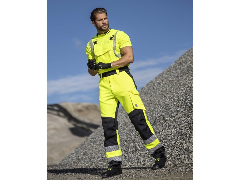 Reflexní kalhoty s laclem ARDON®SIGNAL+ zkrácené žluto-černá - DOPRODEJ