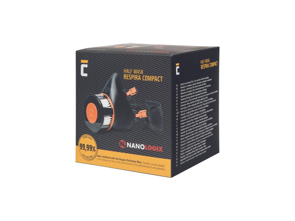polomaska s výměnnými filtry; v kombinaci s filtrem Respira Perfection částicový záchyt i více než 99,99 %; tento produkt neobsahuje žádné složky přírodního kaučukového latexu; polomaska Respira Compact s P3 filtrem byla testována ve vojenském Centru biologické ochrany Těchonín proti zvláště nebezpečným chorobám klasifikovaným jako úroveň biologické bezpečnosti 3 (BSL 3), jako je korejská hemoragická horečka, tyfus, HIV, tuberkulóza a antrax a BSL 4 nemoci, jako jsou SARS, horečka Lassa, neštovice a ebola; balení obsahuje pouze polomaskuDoplňkové parametry
