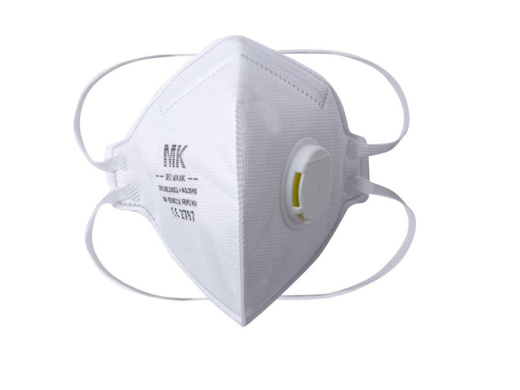 - Čtyřvrstvý skládaný respirátor FFP2 s ventilkem – chrání dýchací orgány před pevnými částicemi a aerosoly nad 0,3 mikrony. Účinný proti bakteriím a plísním, pevným a kapalným prachům, kouřům a aerosolům