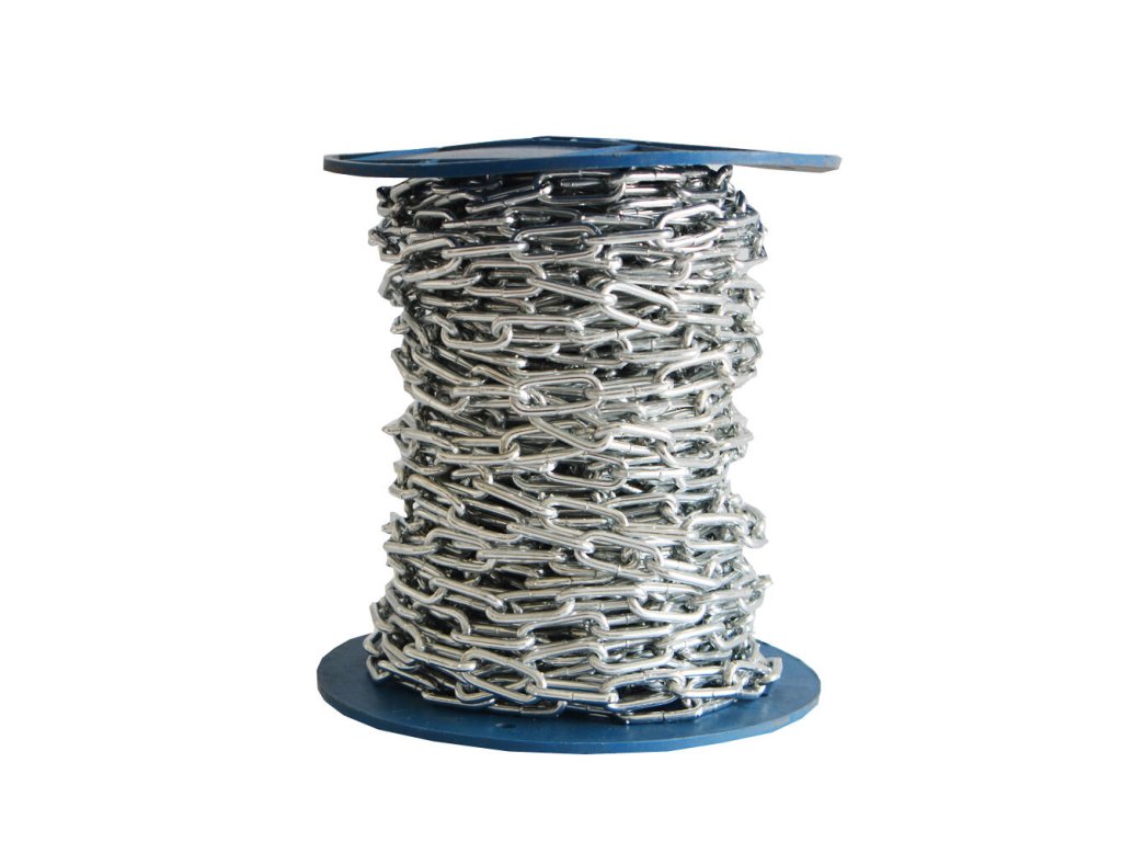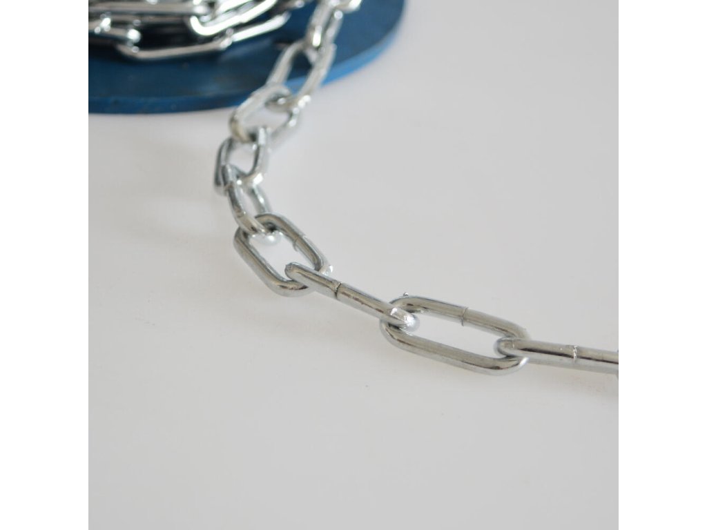 délka: 30 m síla řetězu: 3,90 mm rozměr článku: 32 mm x 8,2 mm maximální zatížení: 255 kg Dlouhočlánkový řetěz je vysoce odolný a využitelný převážně v exteriéru.Doplňkové parametry