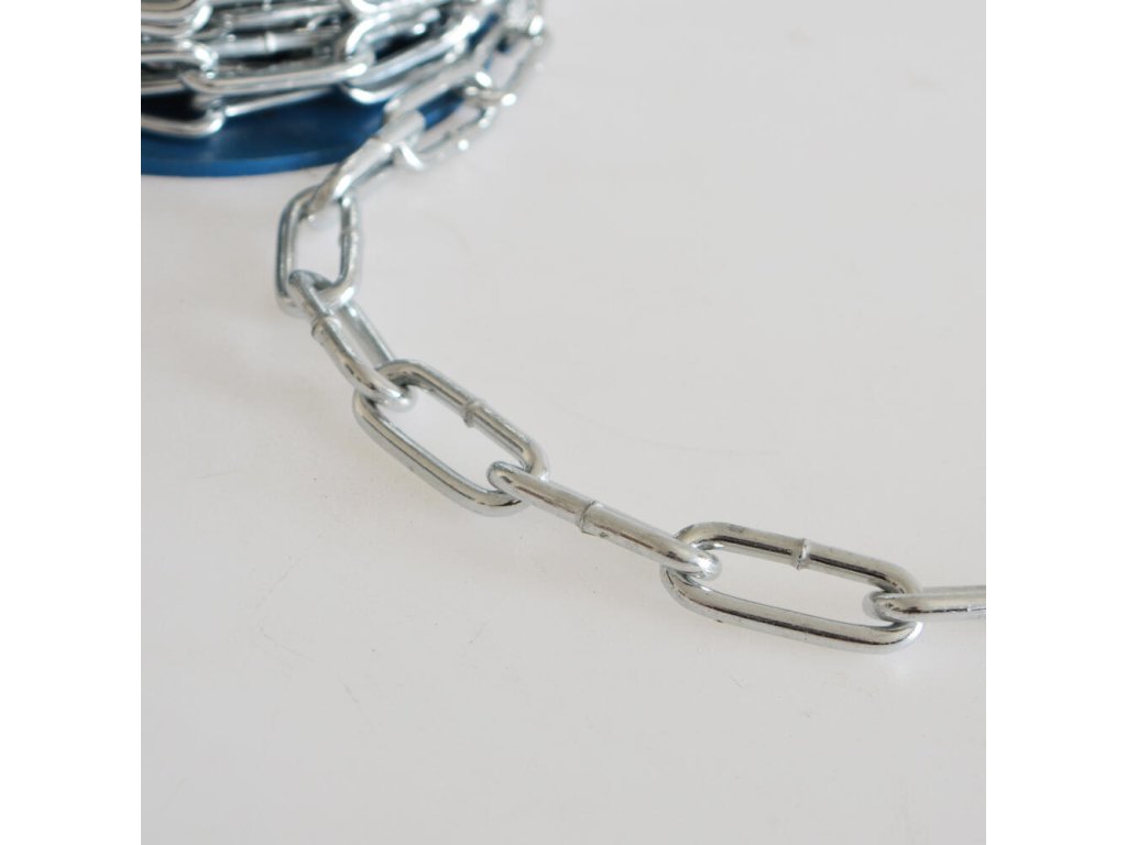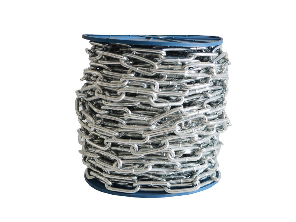 délka: 30 m síla řetězu: 5,90 mm rozměr článku: 42 mm x 12,2 mm maximální zatížení: 510 kg Dlouhočlánkový řetěz je vysoce odolný a využitelný převážně v exteriéru.Doplňkové parametry