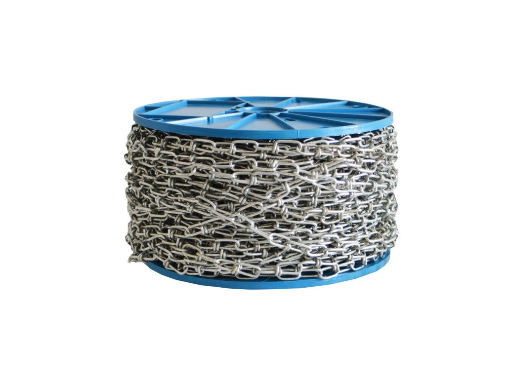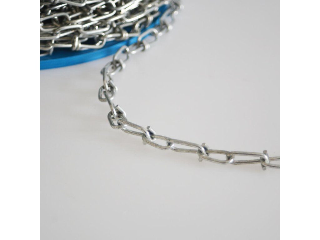 délka: 60 m síla řetězu: 2,00 mm rozměr článku: 28 mm x 5,1 mm maximální zatížení: 20 kg Kroucený řetěz je vysoce odolný a využitelný převážně v exteriéru.Doplňkové parametry