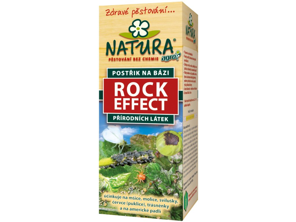 Agro NATURA Rock Effect je unikátní koncentrát na bázi přírodních látek pro zvýšení odolnosti a obranyschopnosti rostlin proti škůdcům. Účinkuje na mšice, molice, svilušky, třásněnky, červce – puklice (v raném stadiu) a na americké padlí na angreštu a rybízu. Je účinný proti škůdcům na okrasných rostlinách, bylinkách, paprikách, rajčatech, okurkách, tykvích (cuketách) jádrovinách, peckovinách, jehličnatých dřevinách a chmelu.