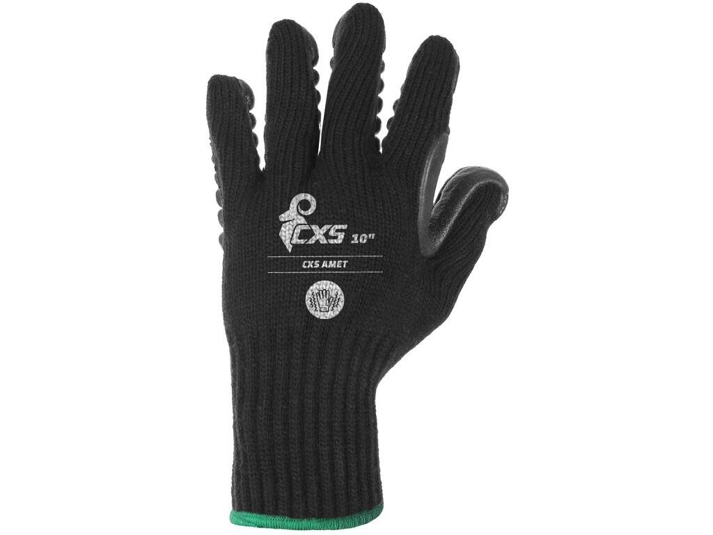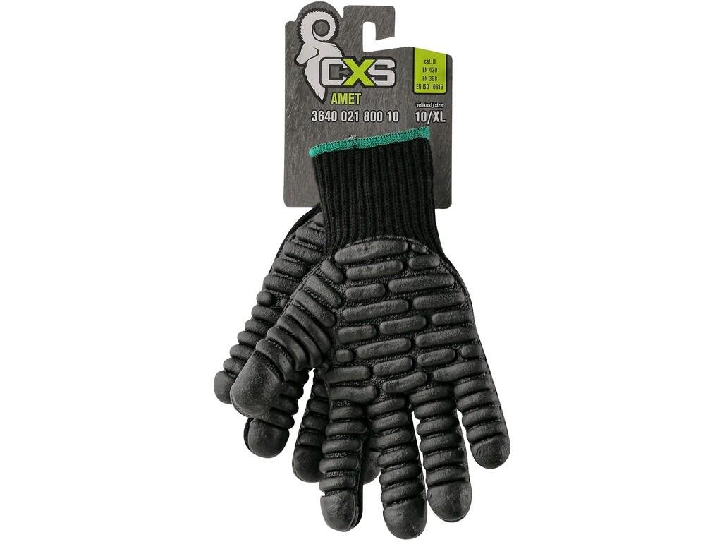 Pletené rukavice s antivibračními polštářky z pěnového latexu v dlani, pružná manžeta. Baleny s blistrem. Doporučené aplikace: práce s vibračním nářadím, údržba zeleně, práce s motorovou pilou, silniční vrtačky, ponorné vibrační stroje, brusky.Doplňkové parametry