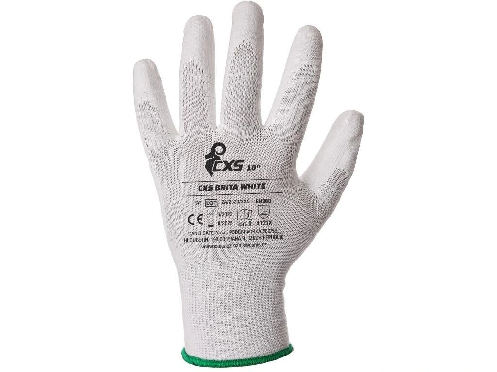 Rukavice CXS BRITA WHITE, máčené v polyuretanu