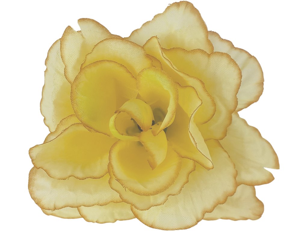 Růže látková - žlutá s hnědým okrajem