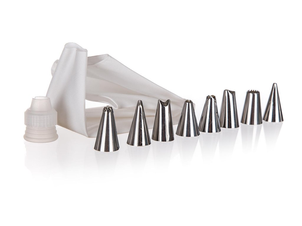 Sáček zdobicí na dorty PH + 8 nástavců nerez CULINARIA. sada obsahuje: 1 x zdobící sáček 1 x konektor 8 různých druhů trysek, materiál nererz Dekorační sada CULINARIA je vynikající ke zdobení a plnění cukrářských i jiných pokrmů.Doplňkové parametry