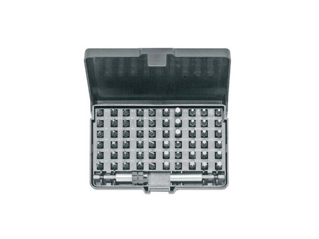 sada obsahuje 62 dílů:: BIT plochý: 3 x 4 mm; 5,5 mm BIT Phillips: 3 x PH1; PH2; PH3 BIT Pozidrive: 3 x PZ1; PZ2; PZ3 BIT Imbus: 3 x 4 mm; 5 mm; 6mm BIT Torx: 3 x T10; T15; T20; T25; T27; T30; T40 1x držák BIT 1/4"x 60 mm, 6-hran Sada 1/4" sn60 bitů TONA EXPERT v plechovém boxu, který umožňuje snadné uložení a přenášení nářadí.Doplňkové parametry